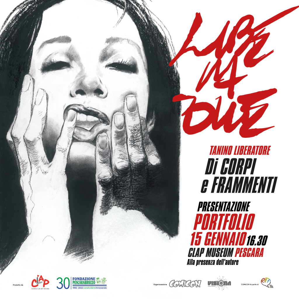 Domenica 15 gennaio, alle 16:30, presso il CLAP Museum di Pescara, incontro e firmacopie con Tanino Liberatore in occasione della pubblicazione del portfolio della mostra Tanino Liberatore – Di Corpi e Frammenti. Promossa da Fondazione Pescarabruzzo e CLAP Museum in collaborazione con COMICON, la mostra – aperta al pubblico fino al 26 marzo – è […]