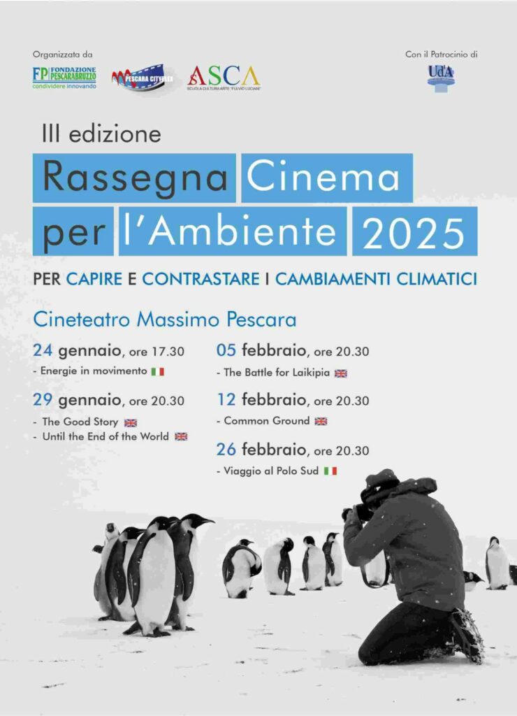Il 24 gennaio parte a Pescara la III Rassegna Cinema per l’Ambiente Prende il via venerdì 24 gennaio alle 17:30, al Cineteatro Massimo, la terza edizione della Rassegna “Cinema per l’Ambiente 2025”, incentrata sui temi dell’ambiente e dei cambiamenti climatici e finalizzata alla crescita della cultura ambientale, così necessaria per acquisire maggiore consapevolezza sulla salvaguardia […]