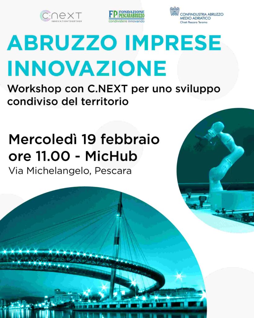 ABRUZZO, INNOVAZIONE: AVVIATI I LAVORI PER VERIFICARE LO SVILUPPO NELLA REGIONE DI UNO DEI POLI DEL SISTEMA NAZIONALE DELL’INNOVAZIONE C.NEXT Il workshop “Abruzzo Imprese Innovazione”, promosso da Fondazione Pescarabruzzo, Confindustria Abruzzo Medio Adriatico e realizzato da C.NEXT Spa, è stato l’occasione per condividere con le imprese un progetto per la crescita economica, sociale e culturale […]