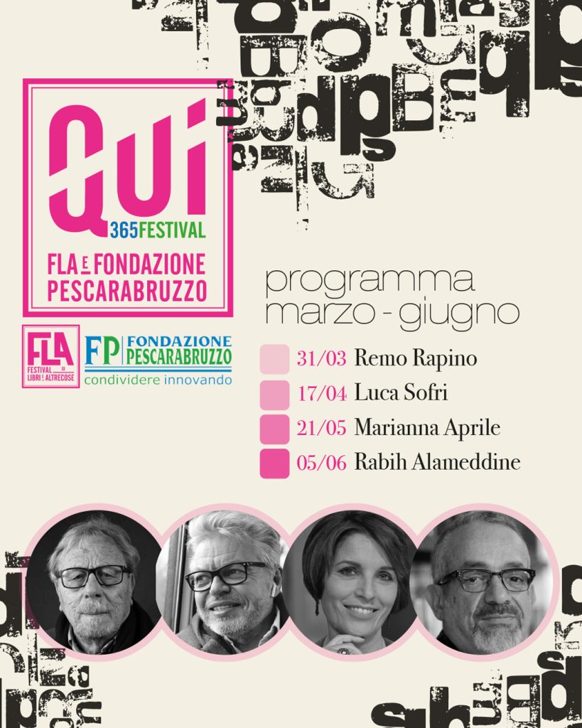 La Fondazione Pescarabruzzo e il FLA – Festival di Libri e Altrecose presentano un nuovo ciclo di incontri tra letteratura e attualità: Remo Rapino, Luca Sofri, Marianna Aprile e Rabih Alameddine tra gli ospiti del calendario fino a giugno Dopo il successo della prima edizione, torna Qui 365 Festival, la rassegna promossa dalla Fondazione Pescarabruzzo […]