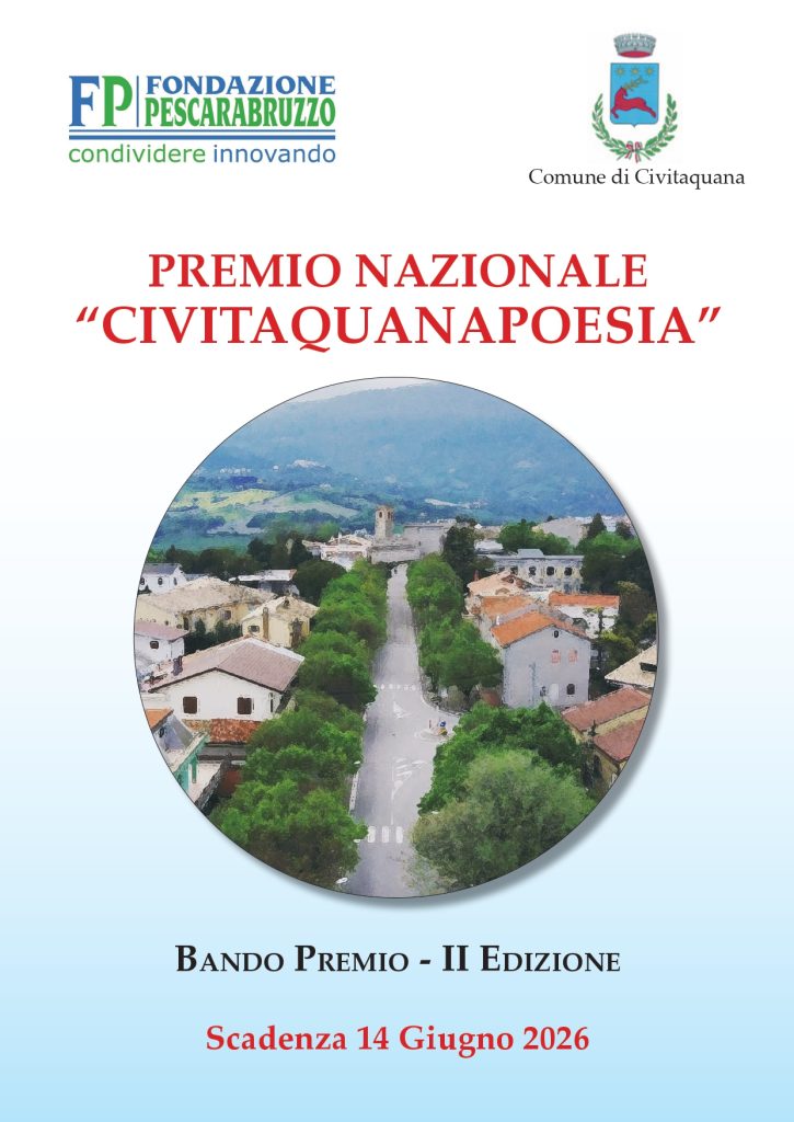 BANDO DI CONCORSO E REGOLAMENTO La Fondazione Pescarabruzzo, in collaborazione con il Comune di Civitaquana, promuove la II edizione del progetto “Civitaquana Borgo della Poesia”, con l’obiettivo di valorizzare la cultura poetica e letteraria all’interno del tessuto urbano e della vita comunitaria, rendendola un elemento identitario e di coesione sociale. L’iniziativa si sviluppa attraverso un […]