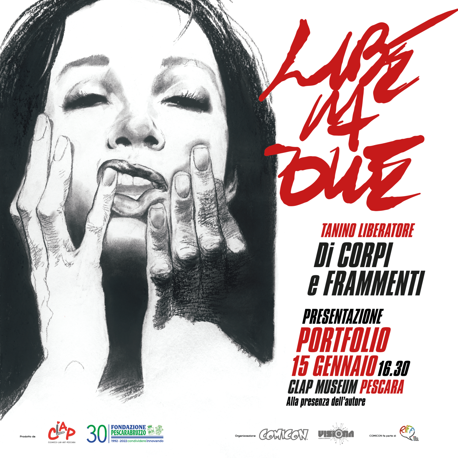 Domenica 15 gennaio, alle 16:30, presso il CLAP Museum di Pescara, incontro e firmacopie con Tanino Liberatore in occasione della pubblicazione del portfolio della mostra Tanino Liberatore – Di Corpi e Frammenti.