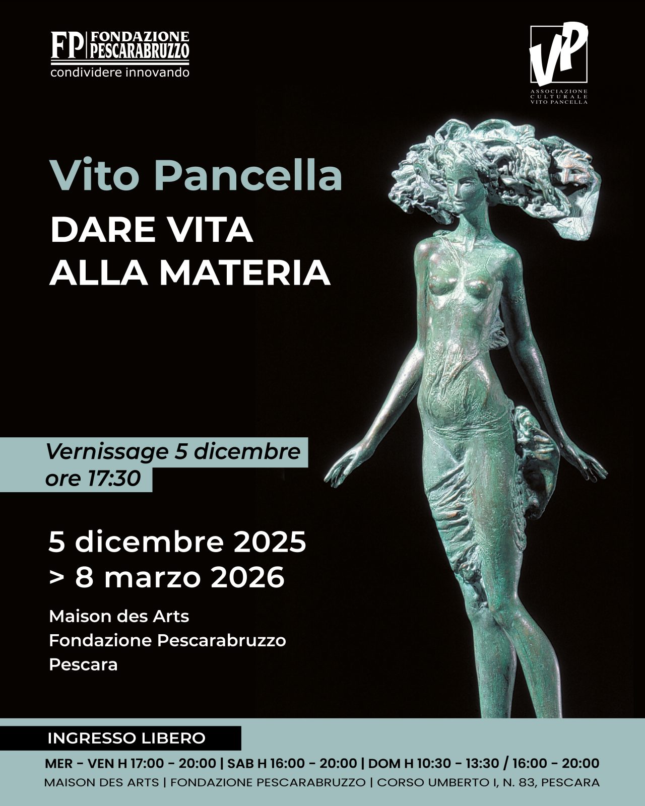 La Fondazione Pescarabruzzo inaugura venerdì 5 dicembre 2025 alle ore 17.30, presso la Maison des Arts, la grande mostra “Vito Pancella: dare vita alla materia”, a ottant’anni dalla nascita e vent’anni dalla scomparsa dello scultore abruzzese (Lanciano, 1945 – 2005).